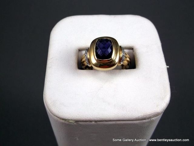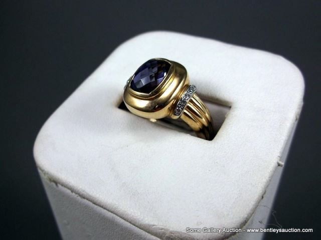 14K Yellow Gold Amethyst Gem and Diamond Ring Sz-7-Marked CS Weight: 9.3 Grams Retail: $1,155.00