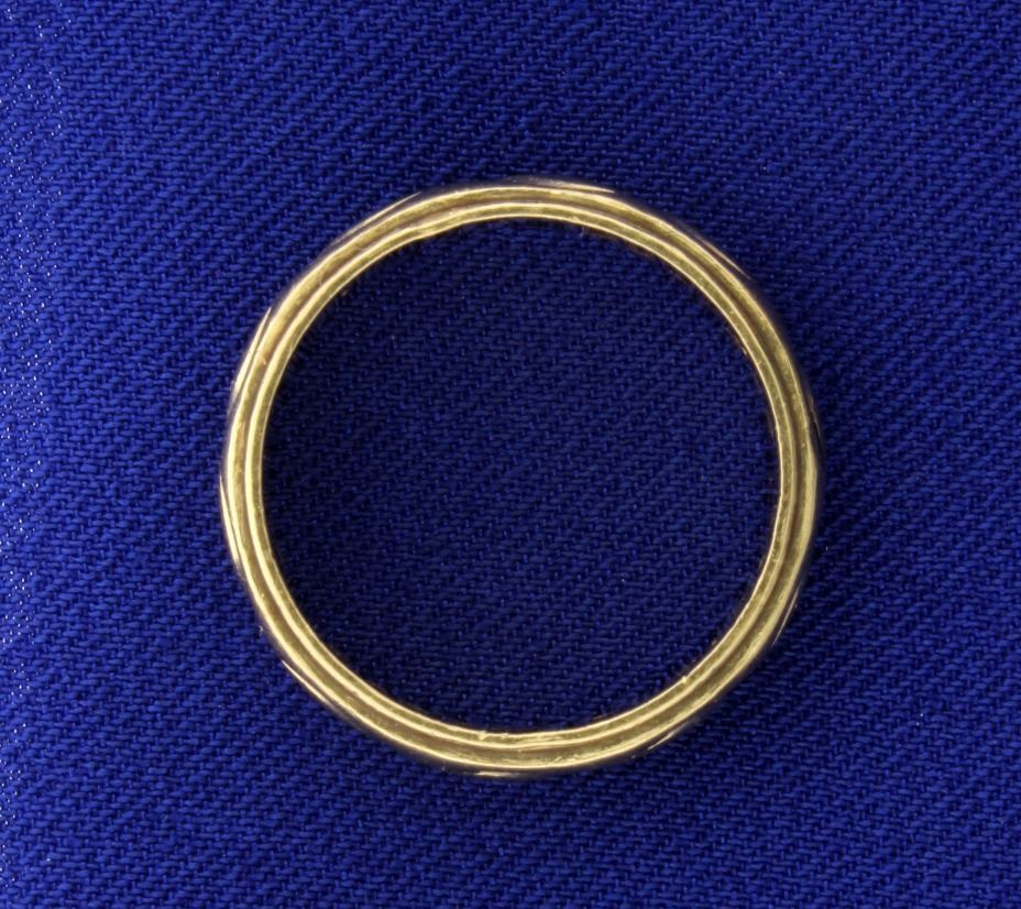 It is engraved with "L.J.M-G.C.W 8-31-68" on inside of shank. Size 8 3/4 7.2g