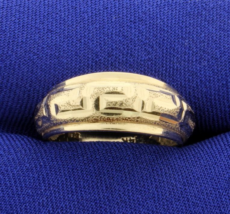 This ring is 8.1mm at its widest. Size 7 1/2 3.0g