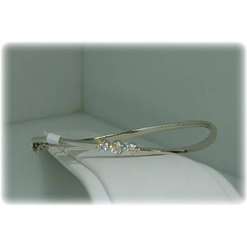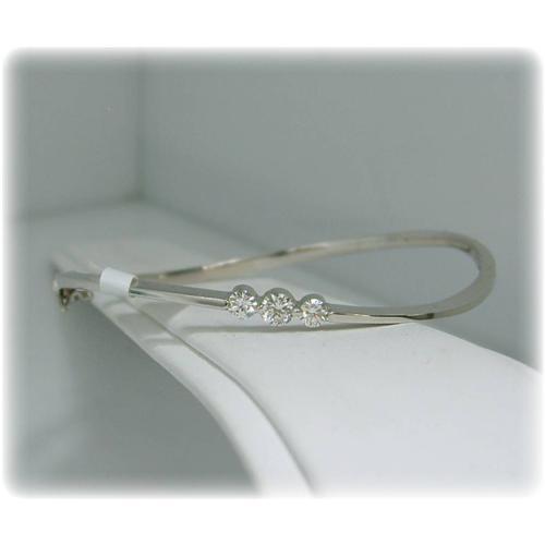 Solid 14K White Gold Bangle Bracelet is set with Genuine Diamonds.