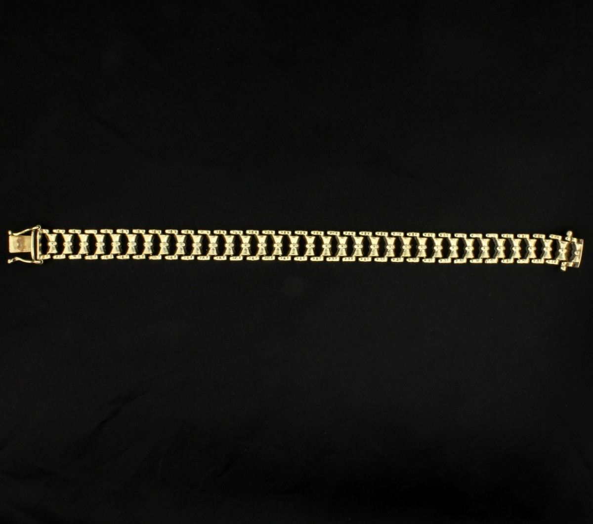 This bracelet is 7 3/4 inches long and 10 1/2mm wide. Stamped 585. 18.7g