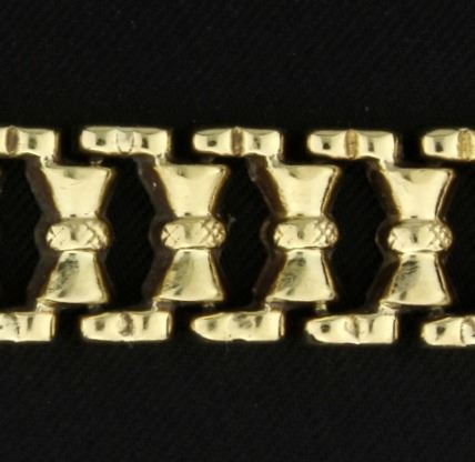 This bracelet is 7 3/4 inches long and 10 1/2mm wide. Stamped 585. 18.7g