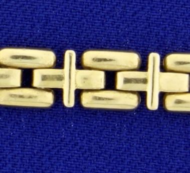 Stamped "14kt Made In Italy Milor". The bracelet is 7 inches long and 6.4mm wide. It has a safety clasp. 13..8g