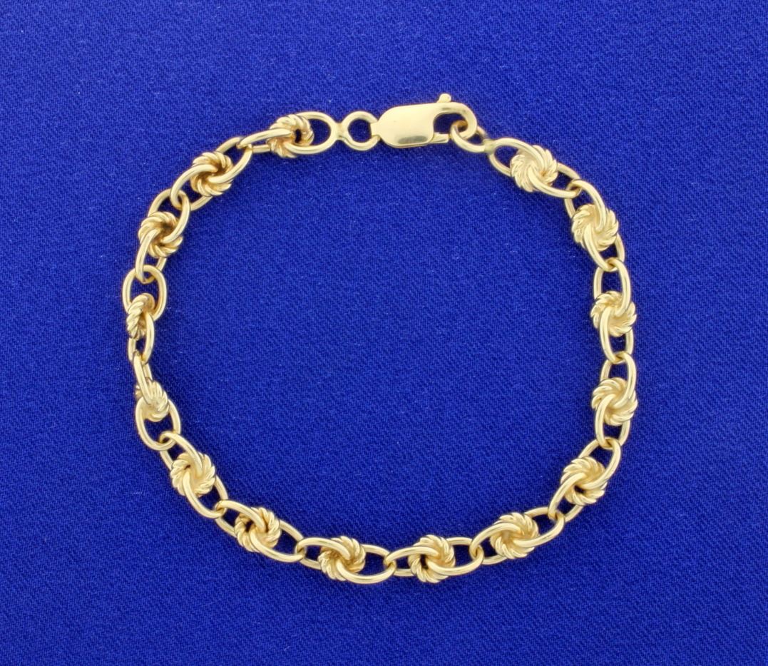 The bracelet is 7 3/4 inches long and 6.3mm wide. 14.3g