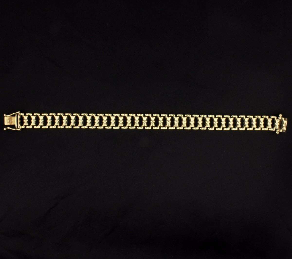 This bracelet is 7 3/4 inches long and 10 1/2mm wide. Stamped 585. 18.7g
