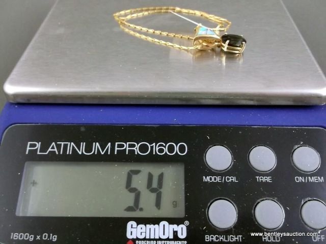 14K Yellow Gold Chain w/ 14K Yellow Gold Pendant w/Green Gem and Opal-Marked CS Weight: 5.4 Grams Re