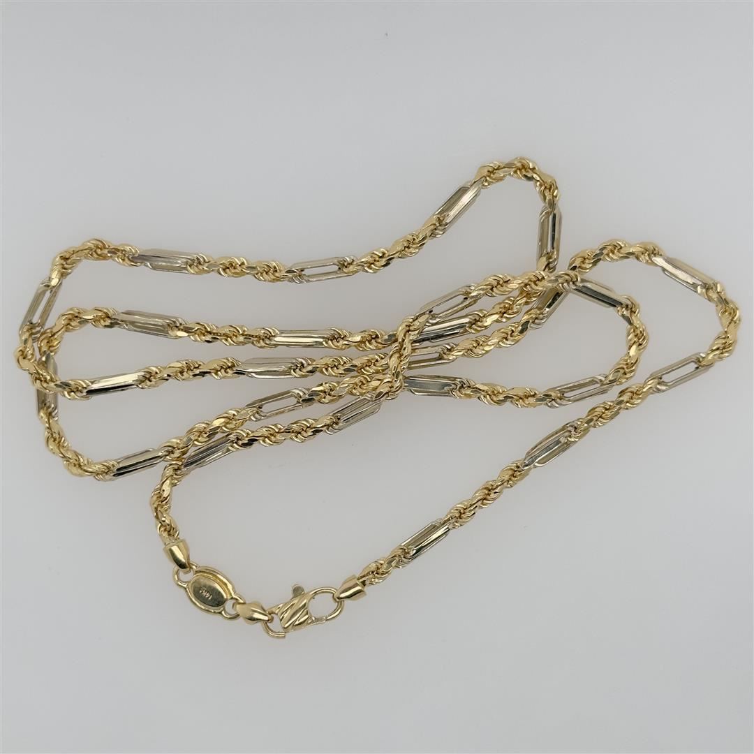 One 14K Yellow Gold Chain. Total weight of chain is 13.3 grams. 21 inches in length.
