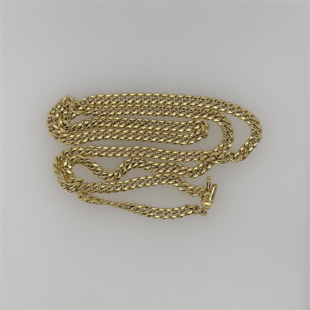 One 14K Yellow Gold Chain. Total weight of chain is 7.6 grams. 25 inches in length.