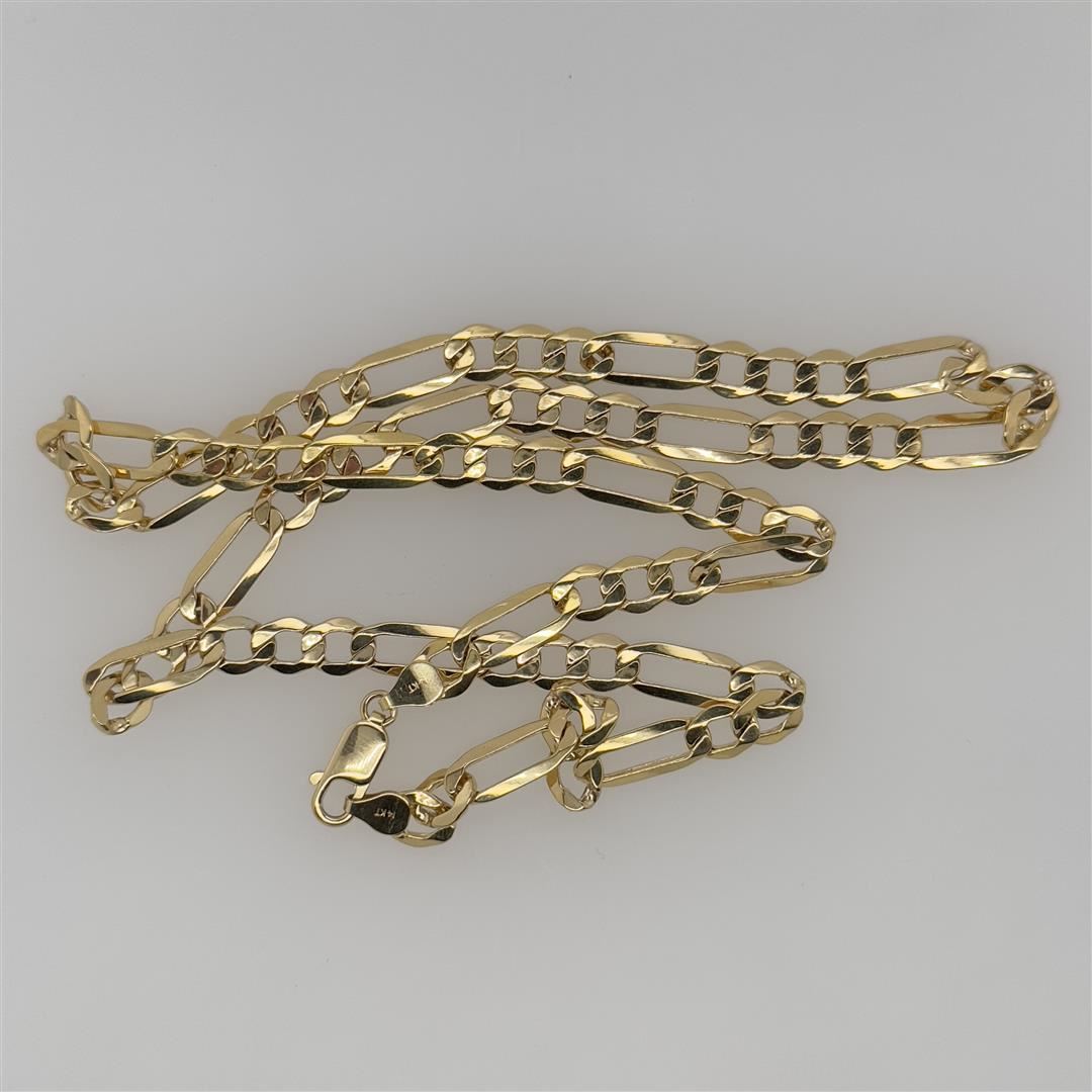 One 14K Yellow Gold Chain. Total weight of chain is 12.7 grams. 22 inches in length.