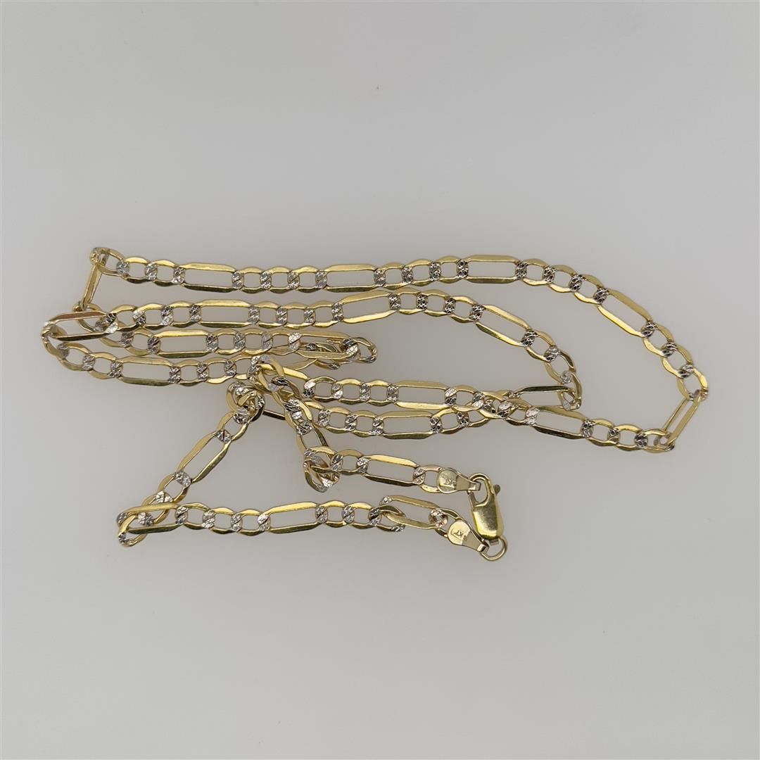 One 14K Yellow Gold Chain. Total weight of chain is 6.8 grams. 23 inches in length.