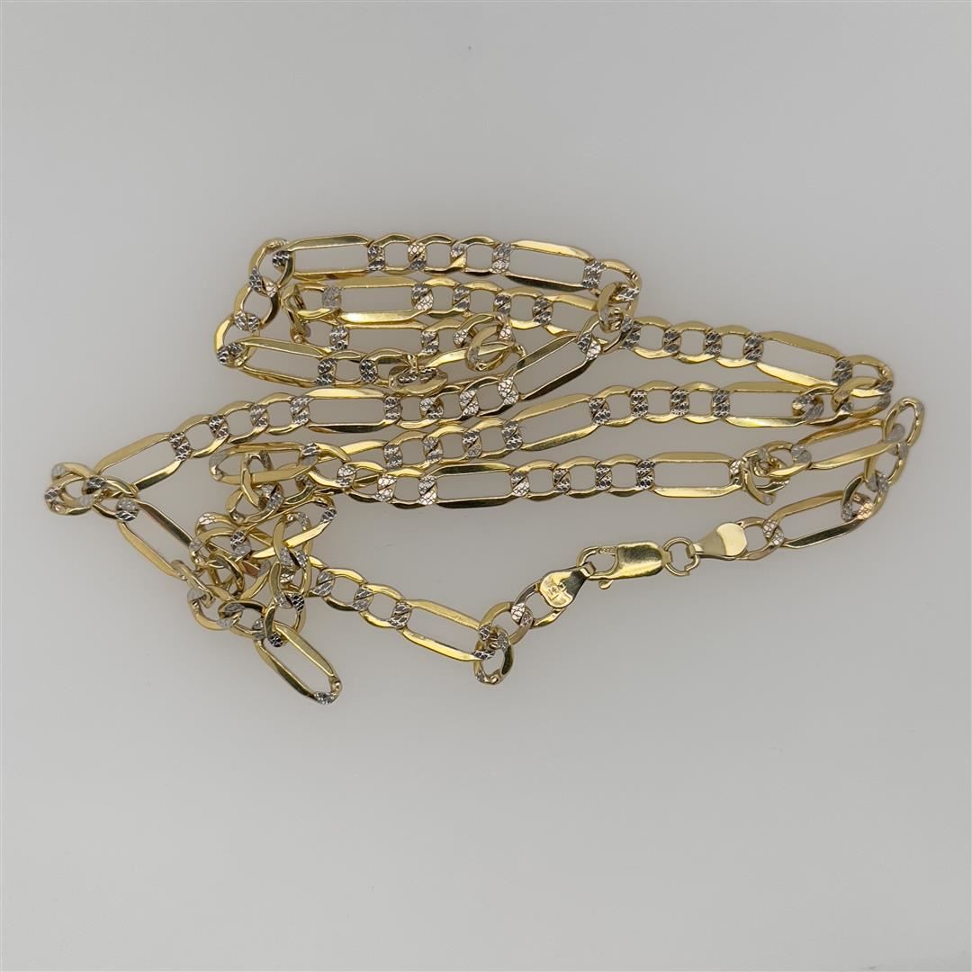 One 14K Yellow Gold Chain. Total weight of chain is 33.2 grams. 26 inches in length.