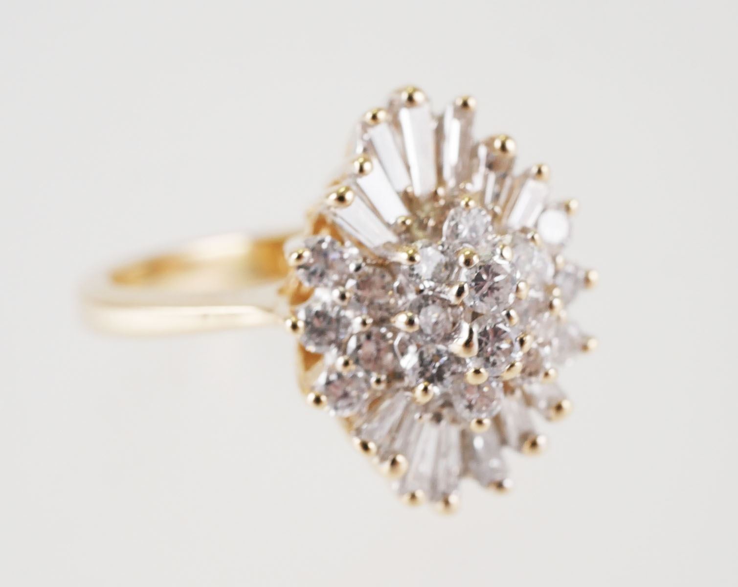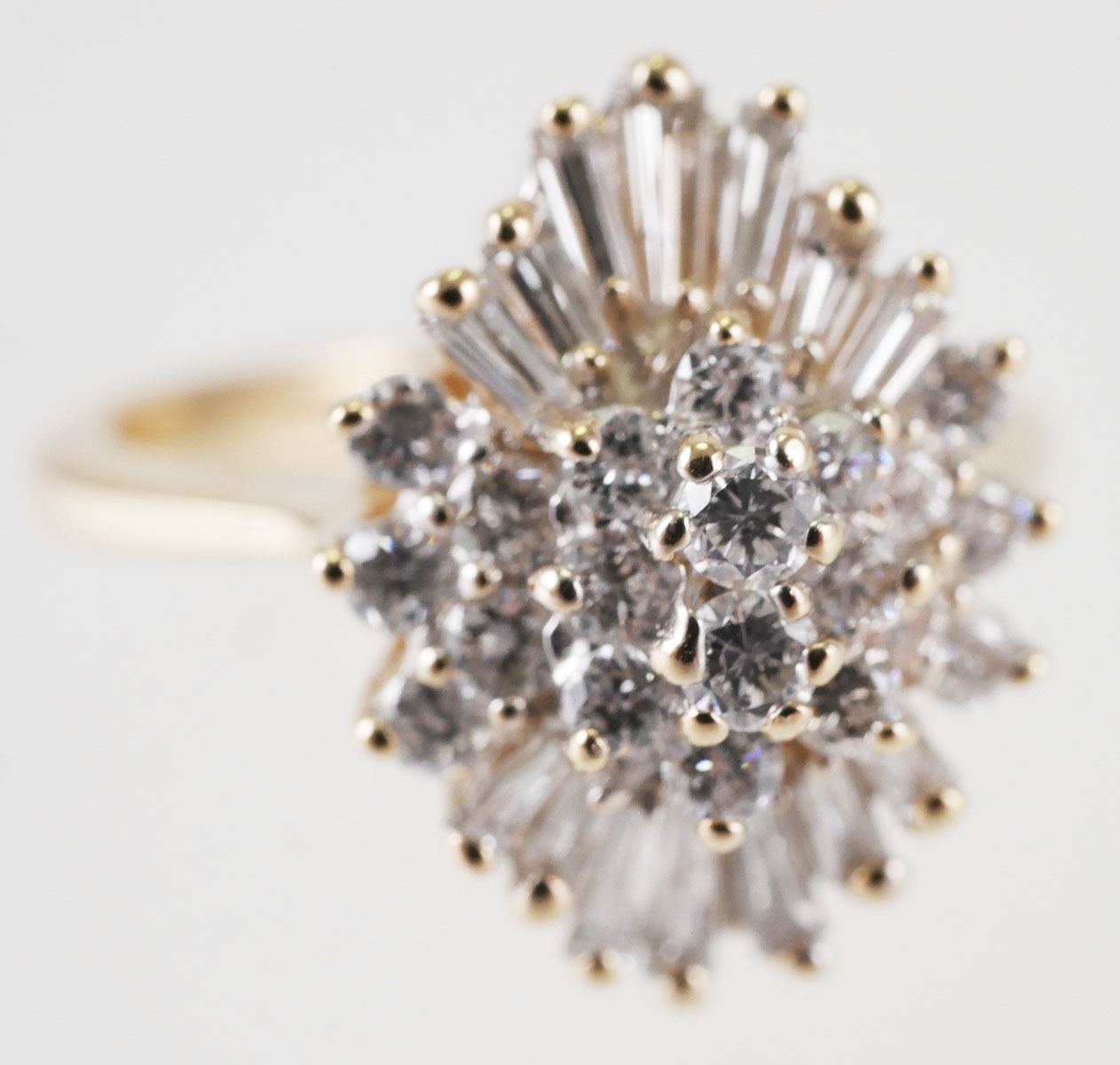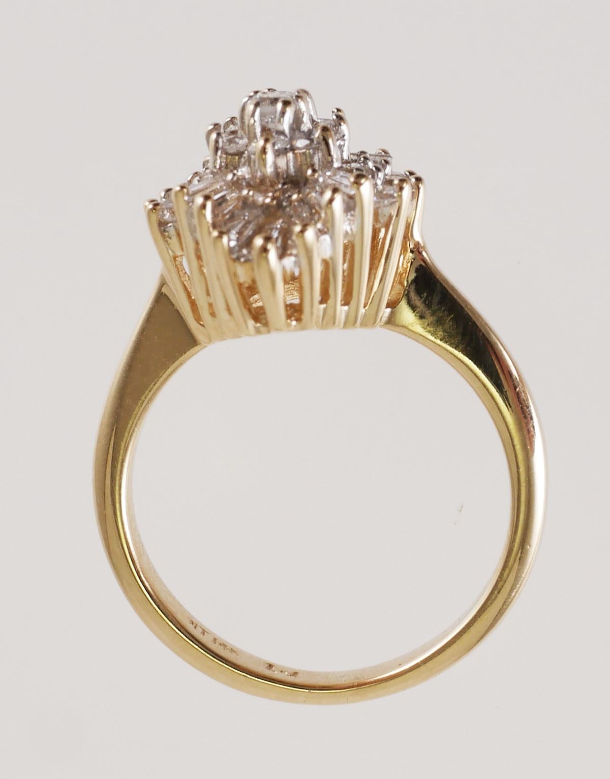 14K white gold cluster ring with 1.05 carat weight in SI diamonds. Ring is size 6 1/2, overall weight is 5.1 grams. Good condition with normal wear, see photos for more details on condition. (18)