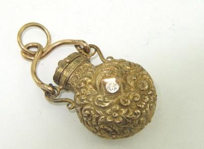 14K Yellow Gold Diamond Charm from 1930.The total weight of Charm is 7.3 grams.The total weight of diamond is 0.10 ct. approximately H color VS clarity.The size of charm is 41 x 21 mm and 11 mm thick.