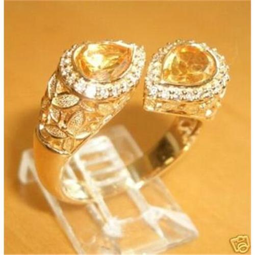 <P>Up for auction is this gorgeous ladies diamond and citrine bypass ring. This ring is set with two genuine pear shaped Citrine. These Citrine are a beautiful orangy/yellow color and weigh a total of approximately 2 1/2 carats. There are forty genuine round brilliant diamonds set in this ring. These diamonds are G color, SI/VS in clarity and weigh a total of 1/3 carat. This ring is solid 14KT Yellow Gold and is a finger size 10, which can be resized. The ring has very unique design and weighs 8.3 grams. This ring is brand new and will also be accompanied by an appraisal by a GIA Certified Diamond Grader with the replacement value of $1,895.00. I will ship this ring promptly in a beautiful gift box. Good Luck with my great deals.</P>