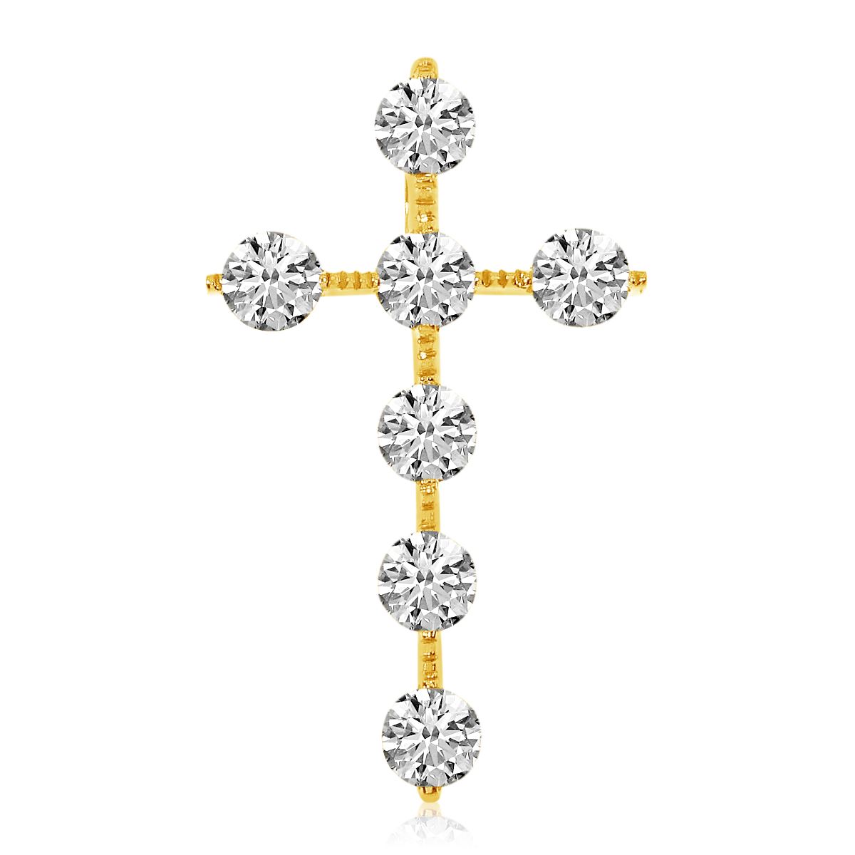 1.00 ct diamond cross in a thin 14k yellow gold design. Includes 18" chain.