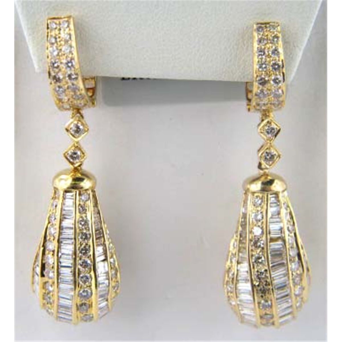 14K Yellow Gold Diamond Earrings.The total weight of the earrings is 22 grams.The weight of the diamond is 2.5 cts approximately, H color VS clarity.The earrings is 52 mm long.