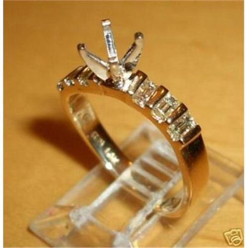 <P>Up for auction is this gorgeous ladies diamond engagement ring setting. This engagement ring is set up to hold a Round Brilliant Diamond or a Princess-cut Diamond weighing approximately 3/4 carat, however, the center crown can be altered to accomodate any shape or size stone. There are six genuine Emerald-cut Diamonds set in the engagement ring. These diamonds are F color, VS clarity and weigh a total of .24 carat. This ring is 14KT Yellow Gold, weighs 3.2 grams and is a finger size 6 3/4, can be easily resized. This ring is brand new and will be accompanied by an appraisal by a GIA Certified Diamond Grader with the retail replacement value of $1,485.00. I will ship these rings promptly in a beautiful gift box. Good Luck with these great deals.</P>