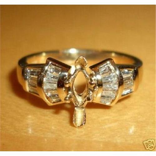 <P>Up for auction is this gorgeous ladies diamond engagement ring setting. This engagement ring is set up to hold a Marquise Brilliant Diamond weighing approximately 3/4 carat. There are sixteen genuine baguette diamonds channel-set in this ring. These diamonds are F color, VS clarity and weigh a total of 1/2 carat. This ring is 14KT Yellow Gold, weighs 3.9 grams, and is a finger size 6 1/2, can be easily resized. This ring is brand new and will be accompanied by an appraisal by a GIA Certified Diamond Grader with the retail replacement value of $1,375.00. I will ship these rings promptly in a beautiful gift box. Good Luck with these great deals.</P>