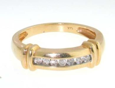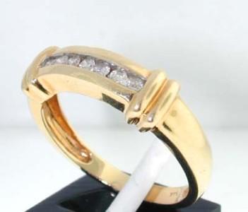 This is a Wonderful 14K Yellow Gold Diamond Ring. The total ring's weight is 4.3 grams. The total weigth of diamond is 0.19 cts approxmiately, I color SI clarity. The size of the ring is 9.25. This is a beautiful ring!!