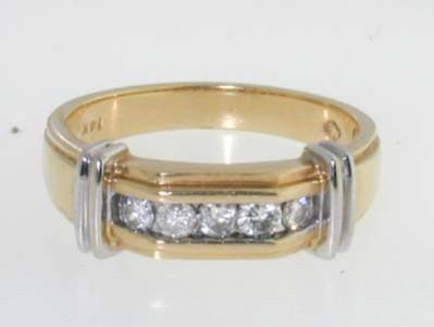 This is a Wonderful 14K Yellow Gold Diamond Ring. The total ring's weight is 5.0 grams. The total weigth of diamond is 0.25 cts approxmiately, I color SI -I clarity. The size of the ring is 6.75. This is a beautiful ring!!