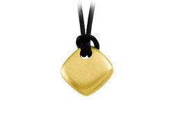 Beautiful and delightful fashion metal with high polished 14K yellow gold diamond shaped pendant hanging with black cord.