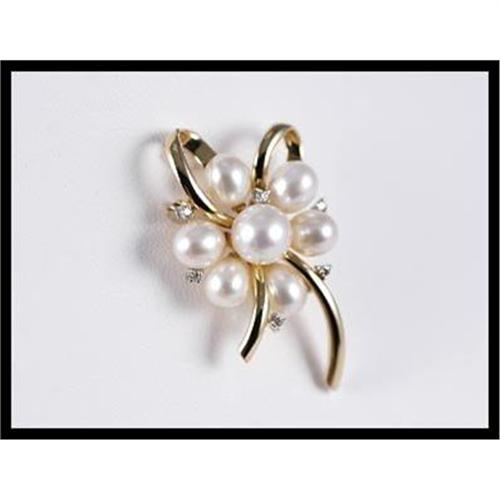 <tr><td>Title:14K Yellow Gold Diamond and Pearl Pin</td></tr>