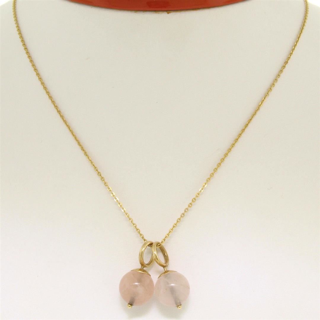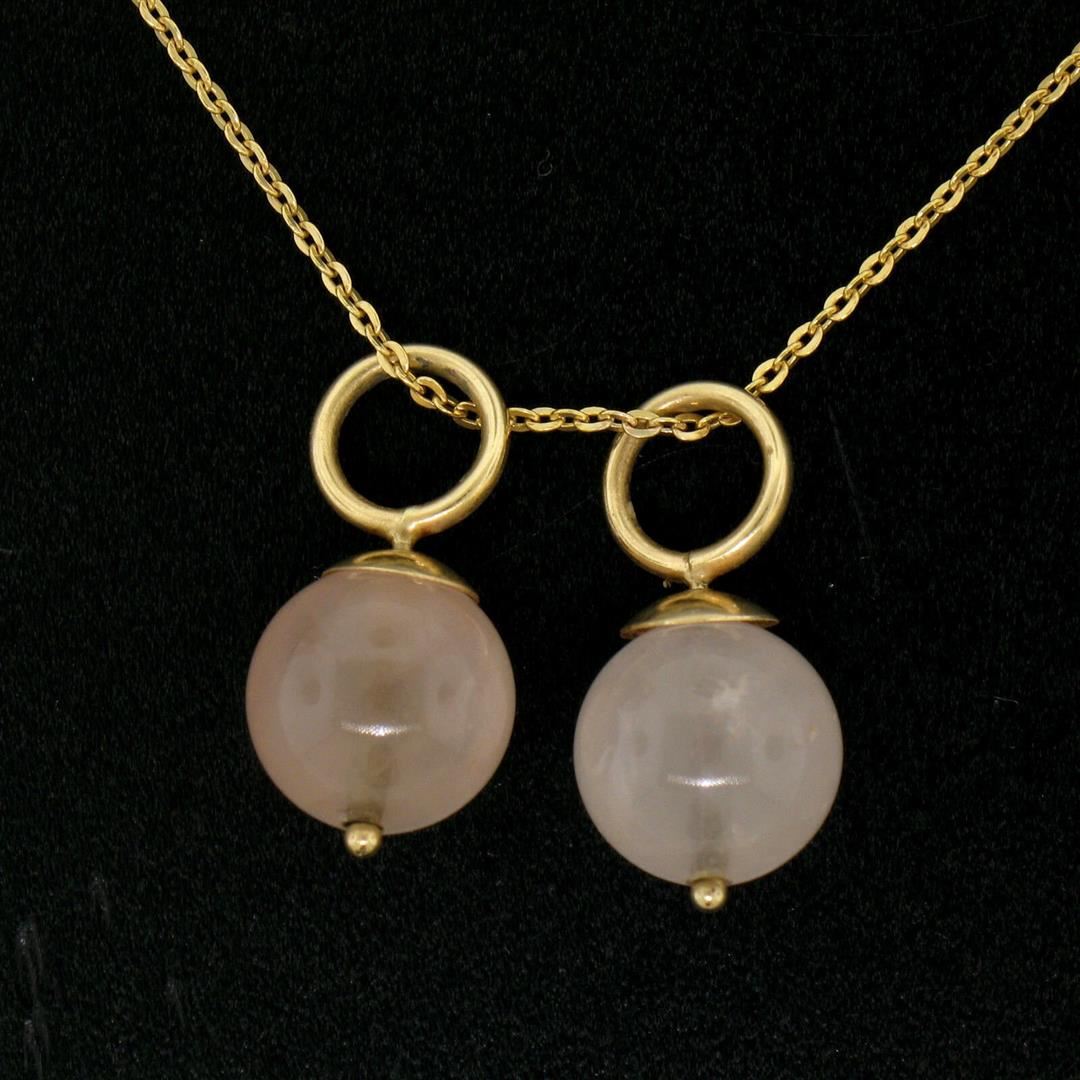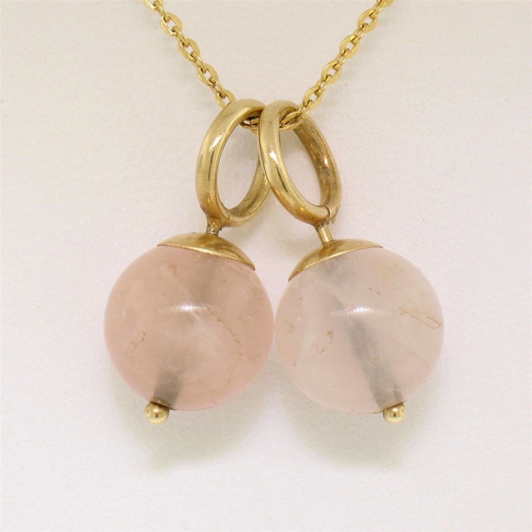 One 14K Yellow Gold Double 10mm Pink Rose Quartz Bead Pendant & 16" Cable Link Chain. Item Details: Material: 14K Gold Yellow Gold, Weight: 3.3 Grams, Chain Type: Cable Link, Chain Length: 16 Inches, Clasp: Lobster Claw, Diameter: 10.07mm (each pendant), Bail Inside Diameter: 5.5mm (each pendant), Height (w/ Bail): 20.70mm Height (w/o Bail): 11.63mm Condition: Like new!