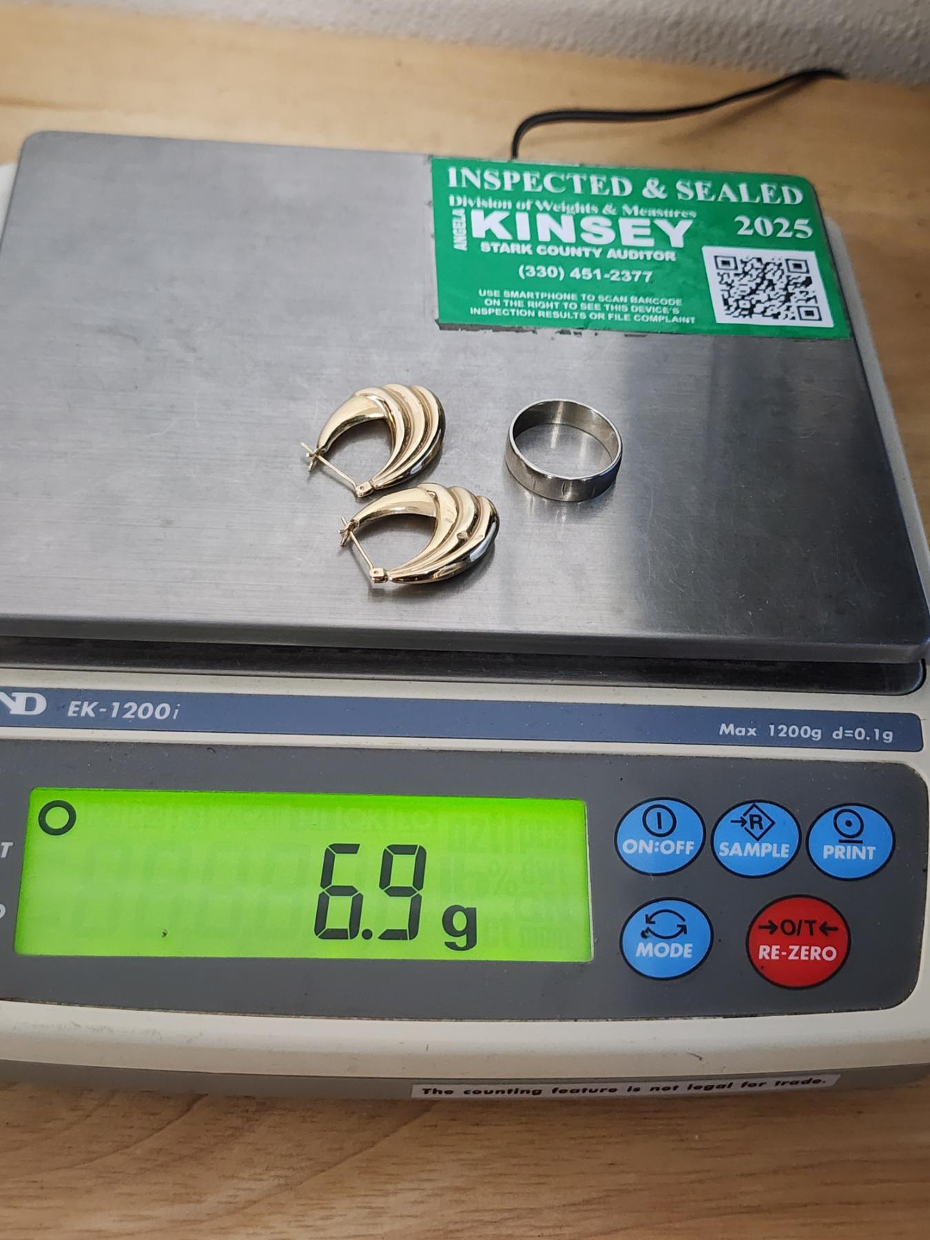 14K Yellow Gold Earrings & Size 8.5 Ring - 8.5 Grams Total of 14K Gold Jewelry!