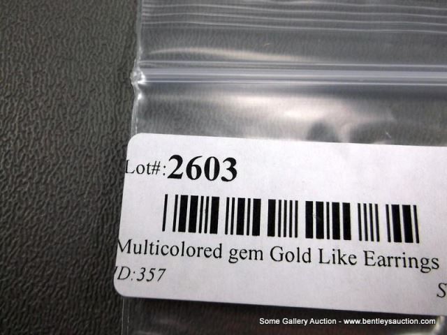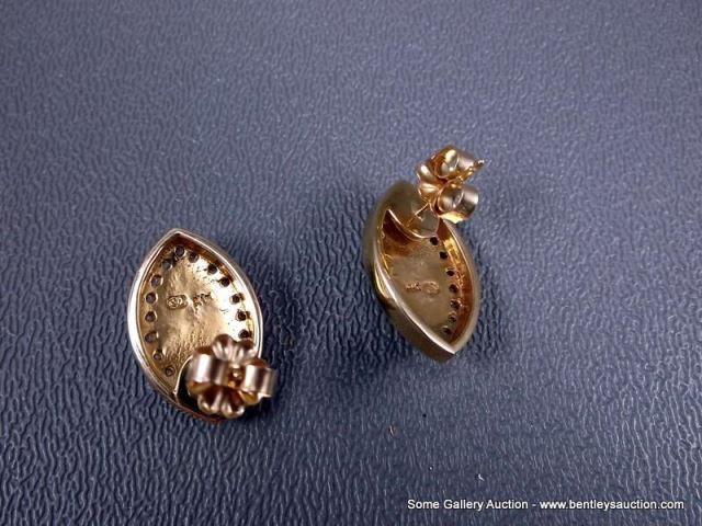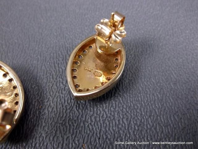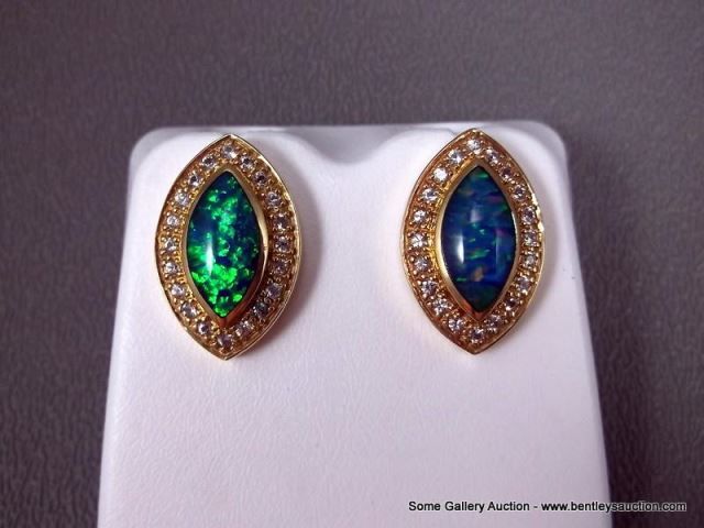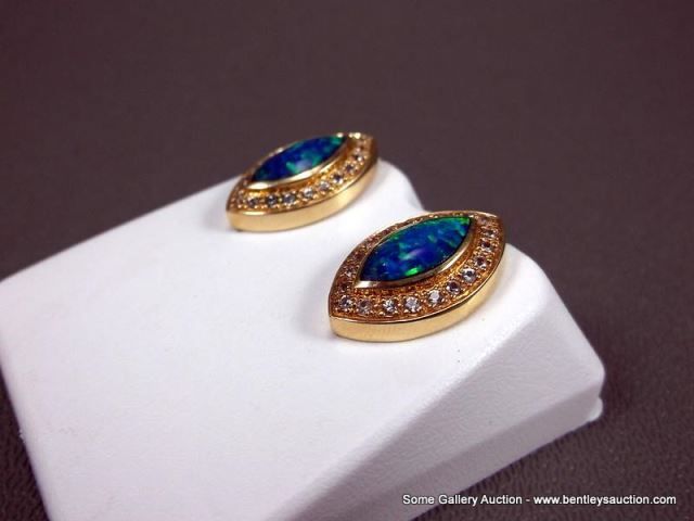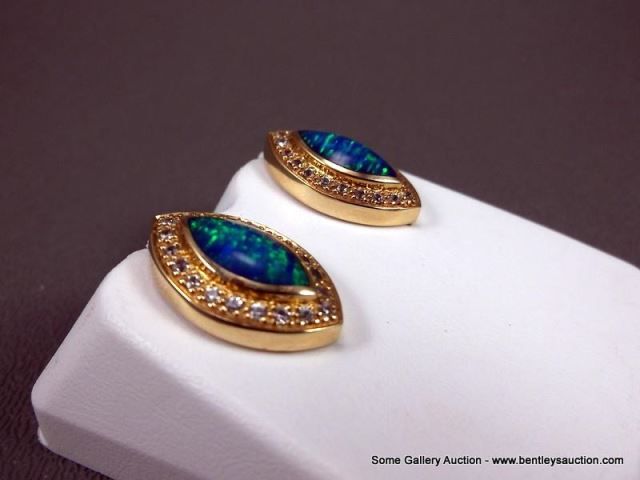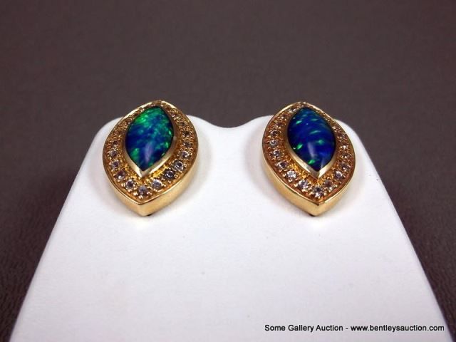 14K Yellow Gold Earrings w/ Opal and Clear Stones- Marked w/ Double Loop Weight: 10.9 Grams Retail: