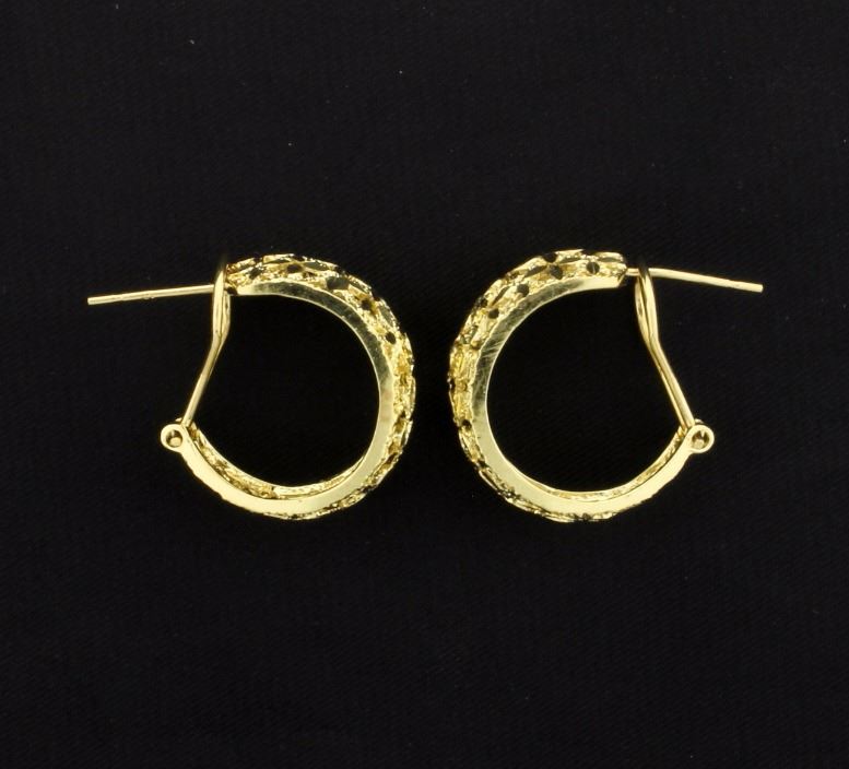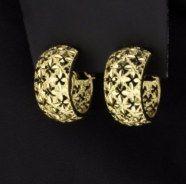 These hoops have a beautiful flower design throughout. They are 3/4 inch long and have safety backs. 7.4g