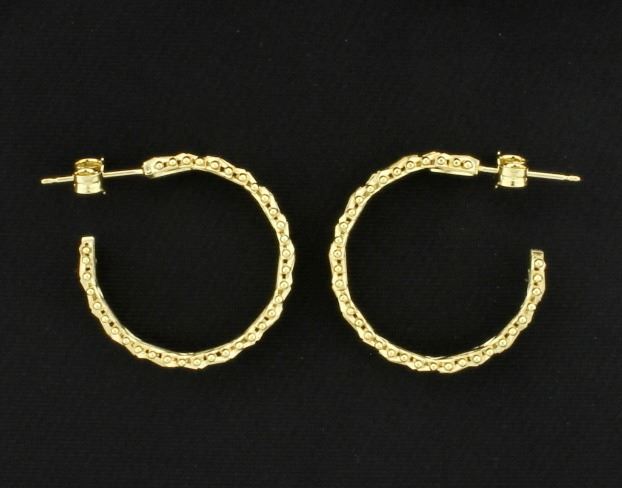 Hoops are 3/4 around with 14K friction backs, the diameter of the hoops is approx. 7/8 inch. 6.8g