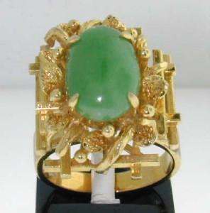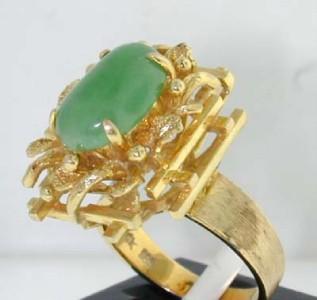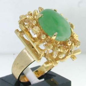 14K Yellow Gold Jade Ring. The total ring's weight is 9.3 grams. The measurements of the ring's surface is 20x16 mm. The size of jade is 12x7 mm. The size of the ring is 5.25. This is a beautiful ring!!