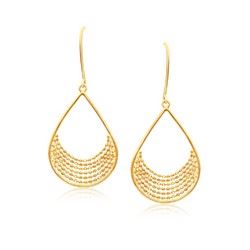 Featuring layered bead chains in a lovely cascading style, these open teardrop dangling earrings are fabulous in 14K yellow gold. Comes with French wire style backings.Rhodium Polish: NoLine Item Type: GoldMetal Name: Yellow GoldMetal Content: 14KStyle Name: DropBacking: French WireLength: 1.75 iWidth: 0.75 i
