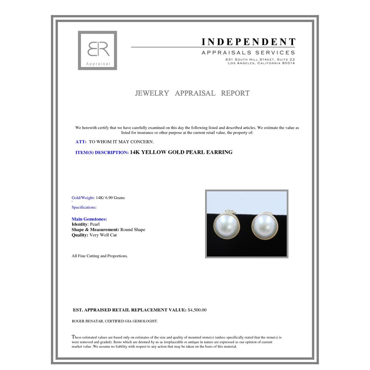 14K Yellow Gold Pearl Earring:6.9g/Pearl