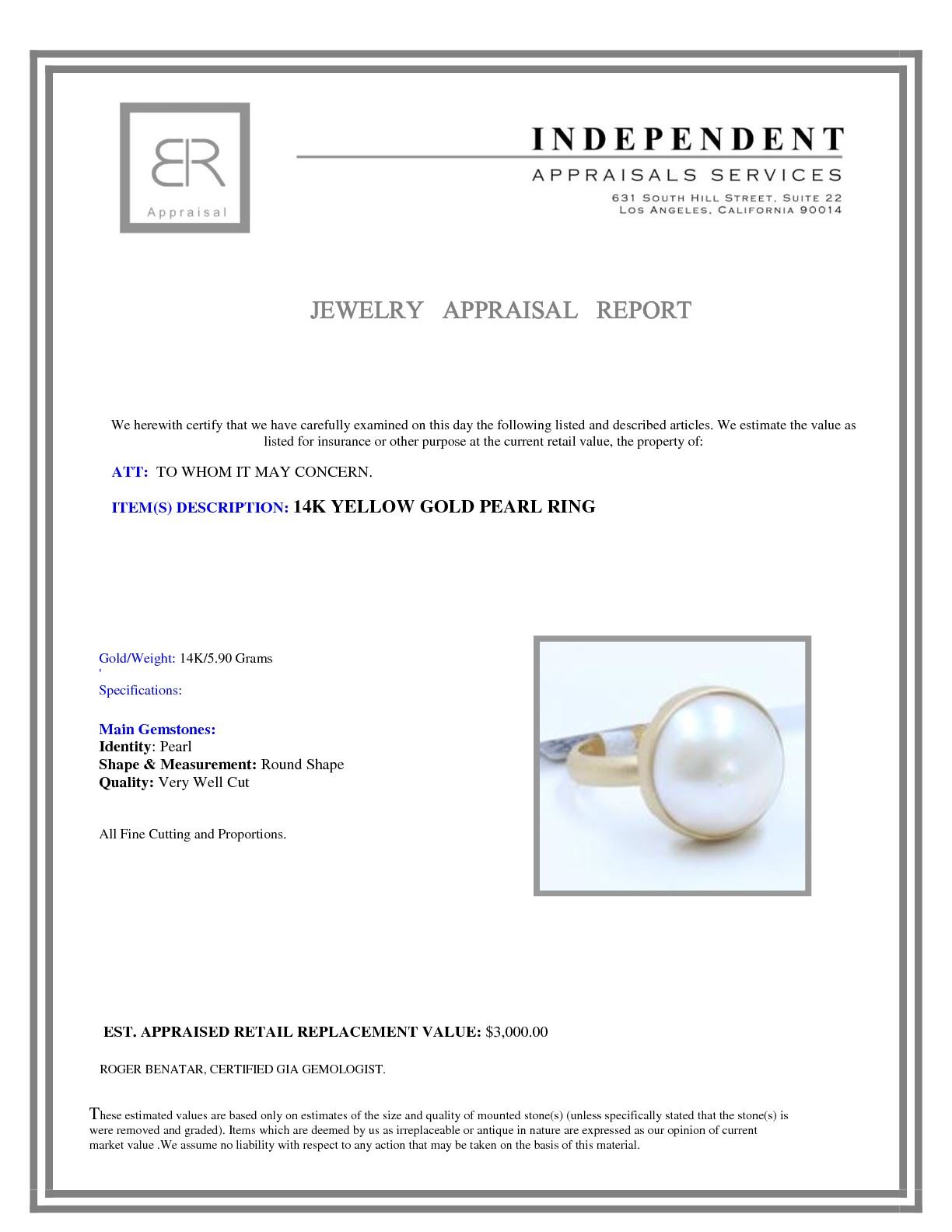 14K Yellow Gold Pearl Ring:5.9g/Pearl