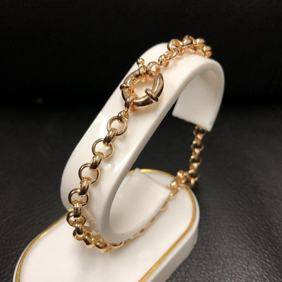 14K Yellow Gold Plated Belcher Bolt Ring Chain Bracelet. View Photos For Further Details.