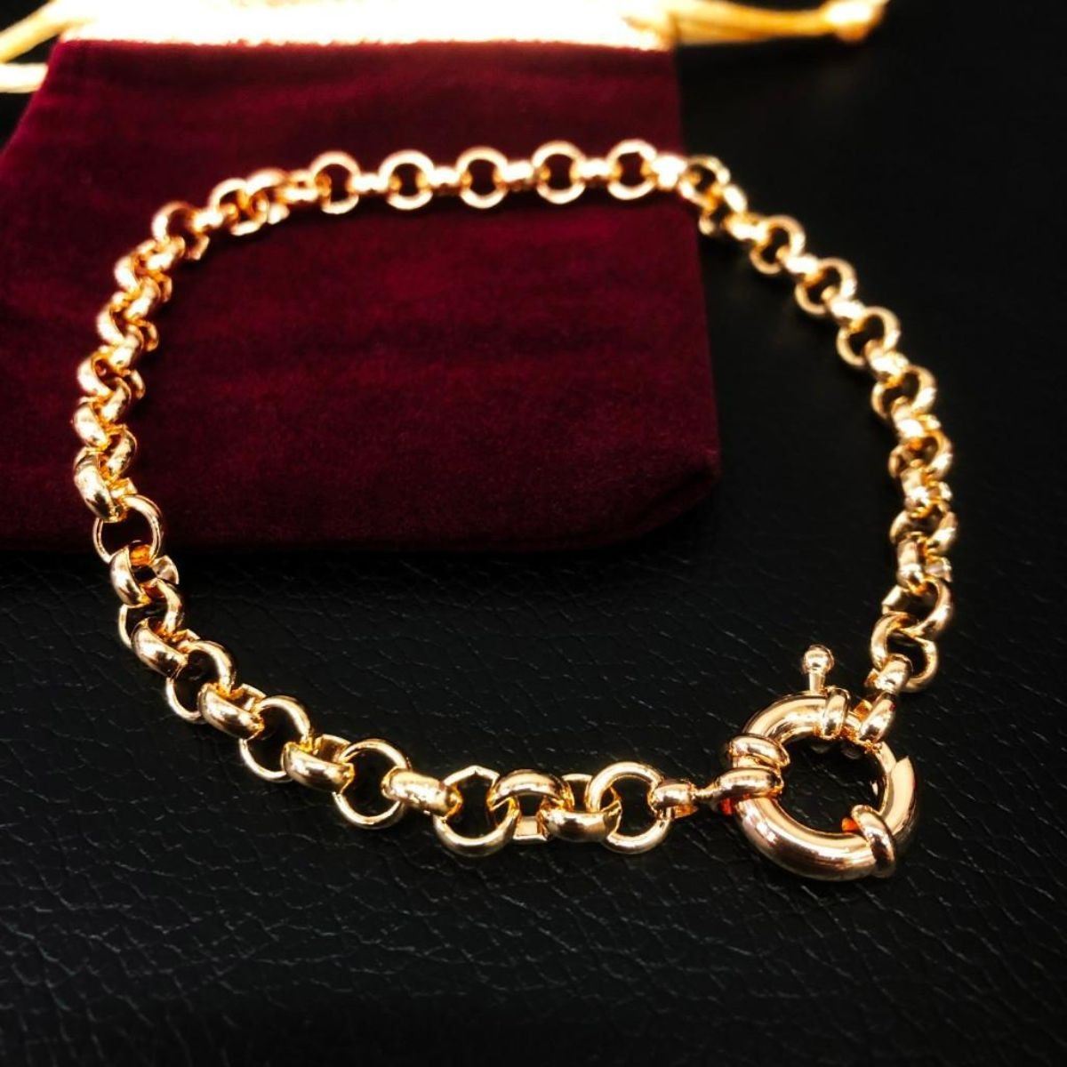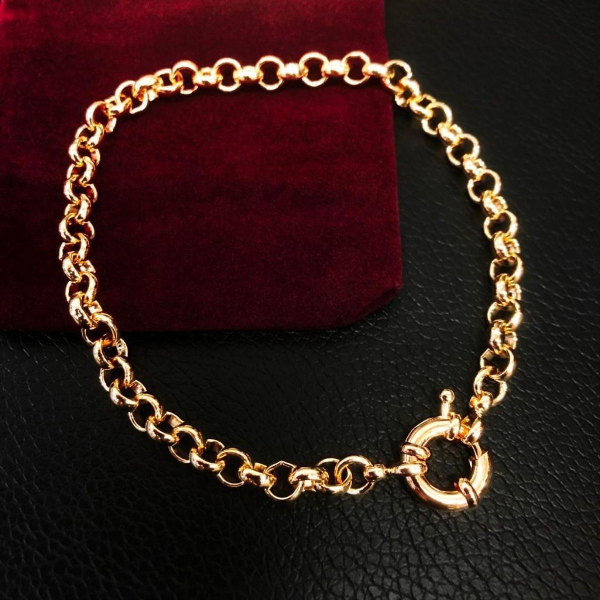 14K Yellow Gold Plated Belcher Bolt Ring Chain Bracelet. View Photos For Further Details.
