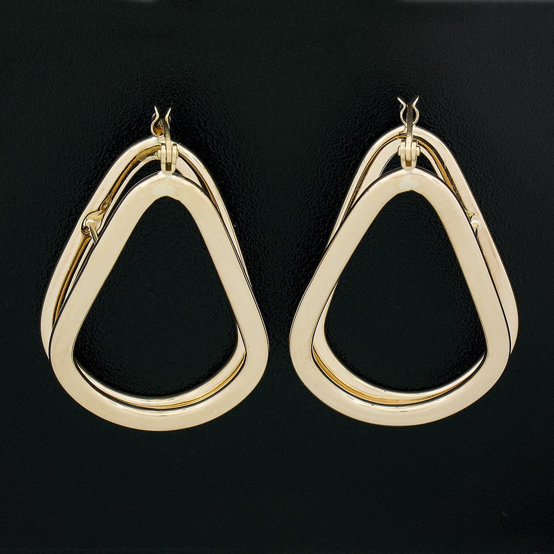 14K Yellow Gold Polished Freeform Off Center 3D Open Tube Hoop Drop Earrings