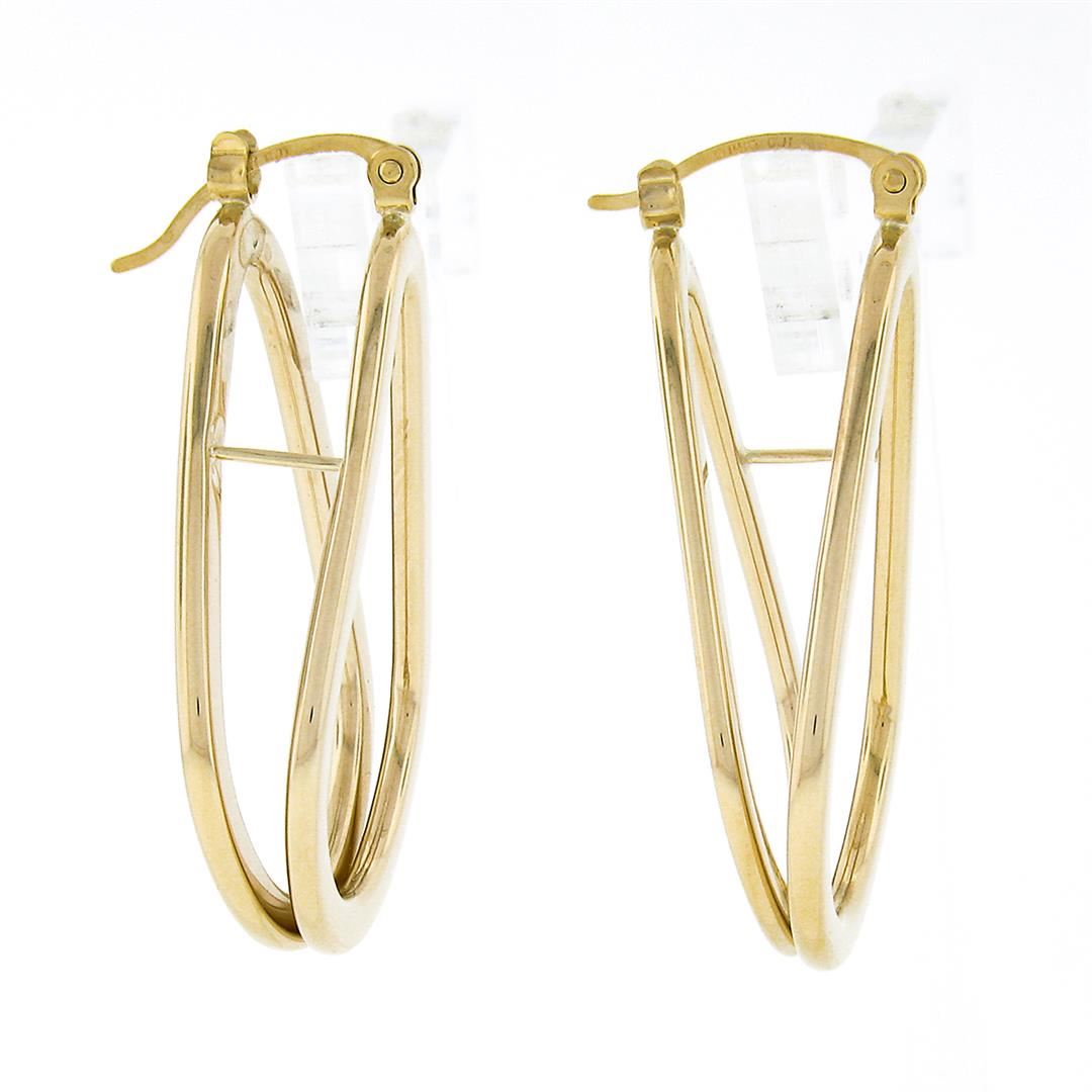 14K Yellow Gold Polished Freeform Off Center 3D Open Tube Hoop Drop Earrings