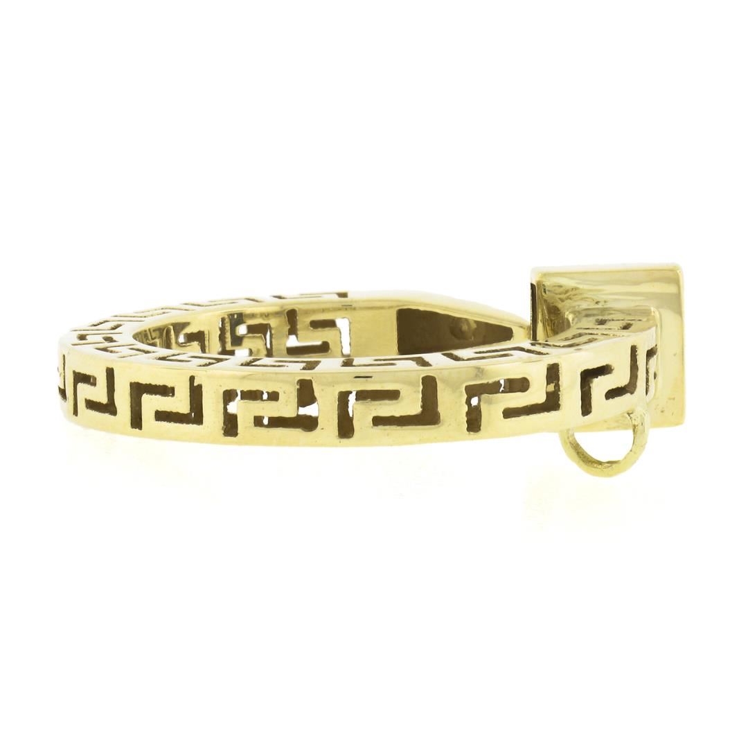 A solid 14k yellow gold nail pendant. The pendant weighs a total of 6.70 grams, measures 33.4x31.2mm including the bail, and the inside of the bail measures 3.2x3mm.
