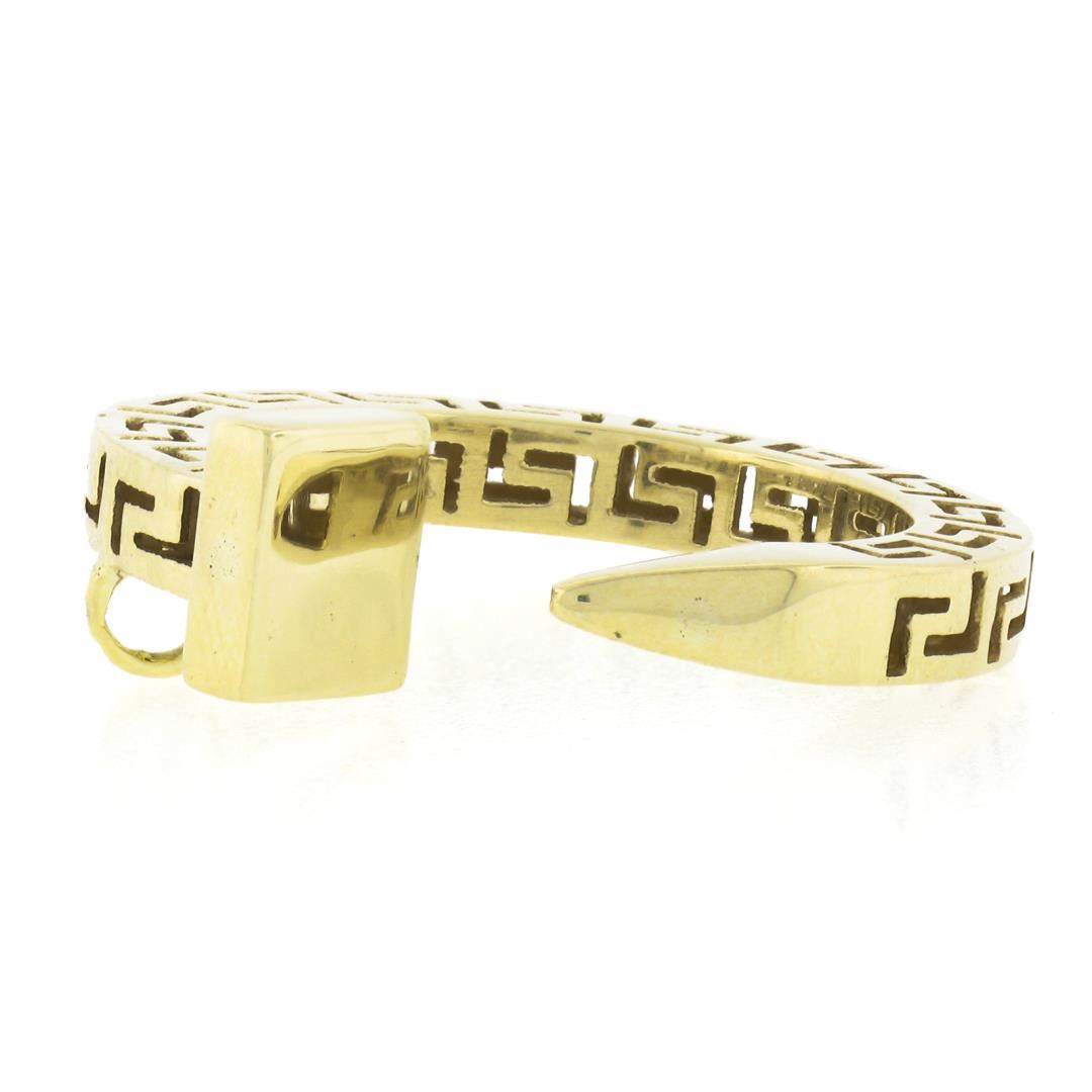 A solid 14k yellow gold nail pendant. The pendant weighs a total of 6.70 grams, measures 33.4x31.2mm including the bail, and the inside of the bail measures 3.2x3mm.