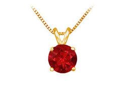 Beautiful Round natural ruby is securely prong-setting attached atop with stylish V shape in a luscious 14K yellow gold. This graceful look solitaire pendant has a total gem weight (TGW) of 0.25 carat.