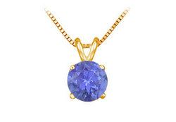A round prong-set natural tanzanite with total gem weight (TGW) of 1.00 carat is delicately attached to a V shape 14K yellow gold. This gemstone solitaire pendant give a glamour look.