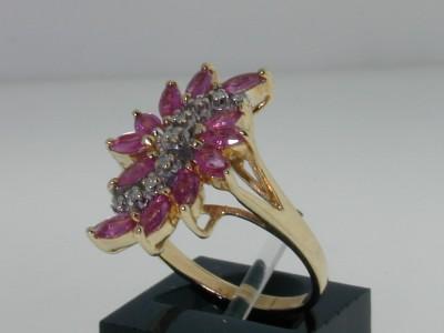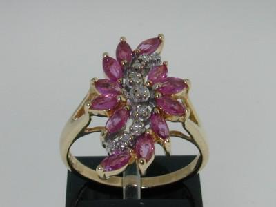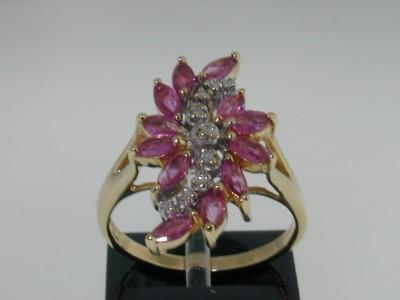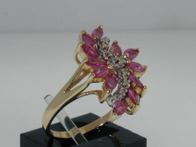This is a Wonderful 14K Yellow Gold Rhodolite & Diamond Ring. The total ring's weight is 4.2 grams. The weight of Diamond: 0.18 cts, J color, SI clarity. The weight of rhodolite is 1cts. The size of the ring is 6.25. This is a beautiful ring!!