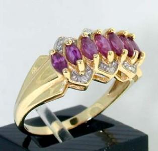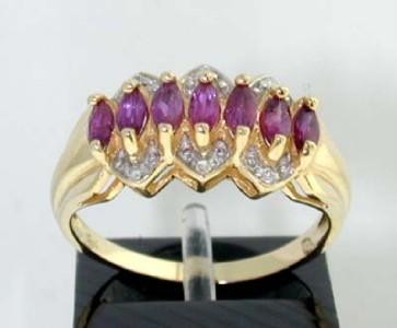 This is a Wonderful 14K Yellow Gold Ruby & Diamond Ring. The total ring's weight is 3.4 grams. The total Diamond Weight is 0.06 cts. approxmiately. I color SI clarity. The total weight of Ruby is 0.7cts. approximately. The size of the ring is 8. This is a beautiful ring!!