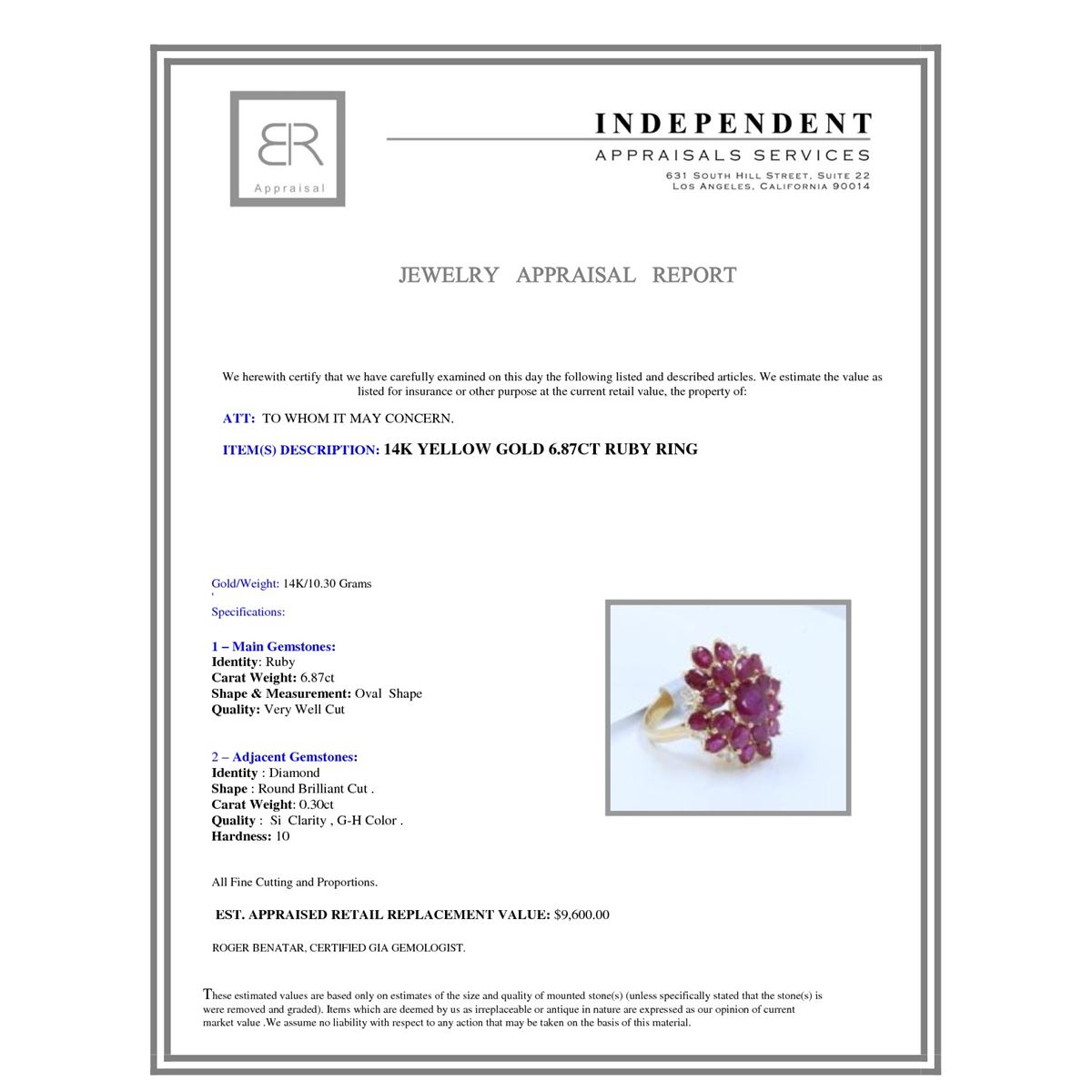 14K Yellow Gold Ruby Ring:10.3gDiamond:0.3ctRuby:6.87ct