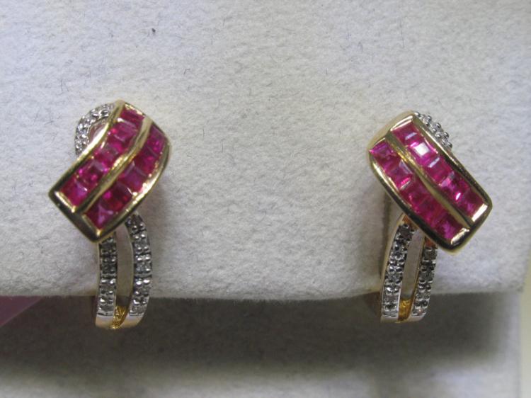 Ruby and Diamonds Earrings * Total Weight of 26 Round Diamonds - 0.13 CT * Total Weight of Rubies- 1.05 CT * 14K Yellow Gold - 4.71 grams * Appraised Value: $ 3,120.00 *