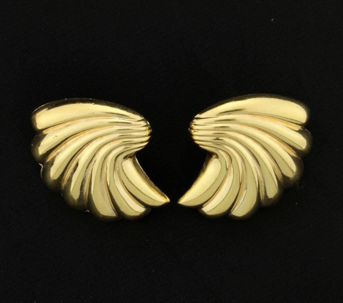 In 14K yellow gold they are 1 1/4 inch long and have friction backs. 5.3g