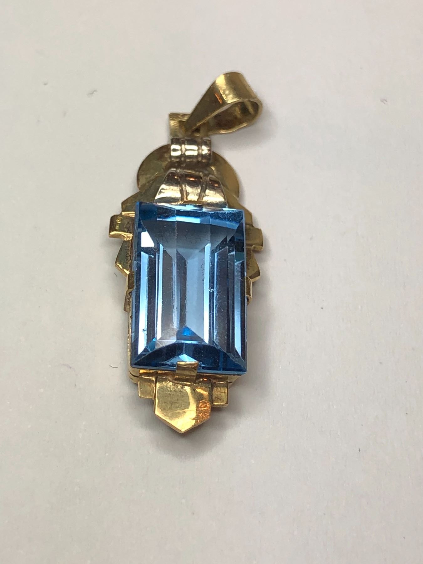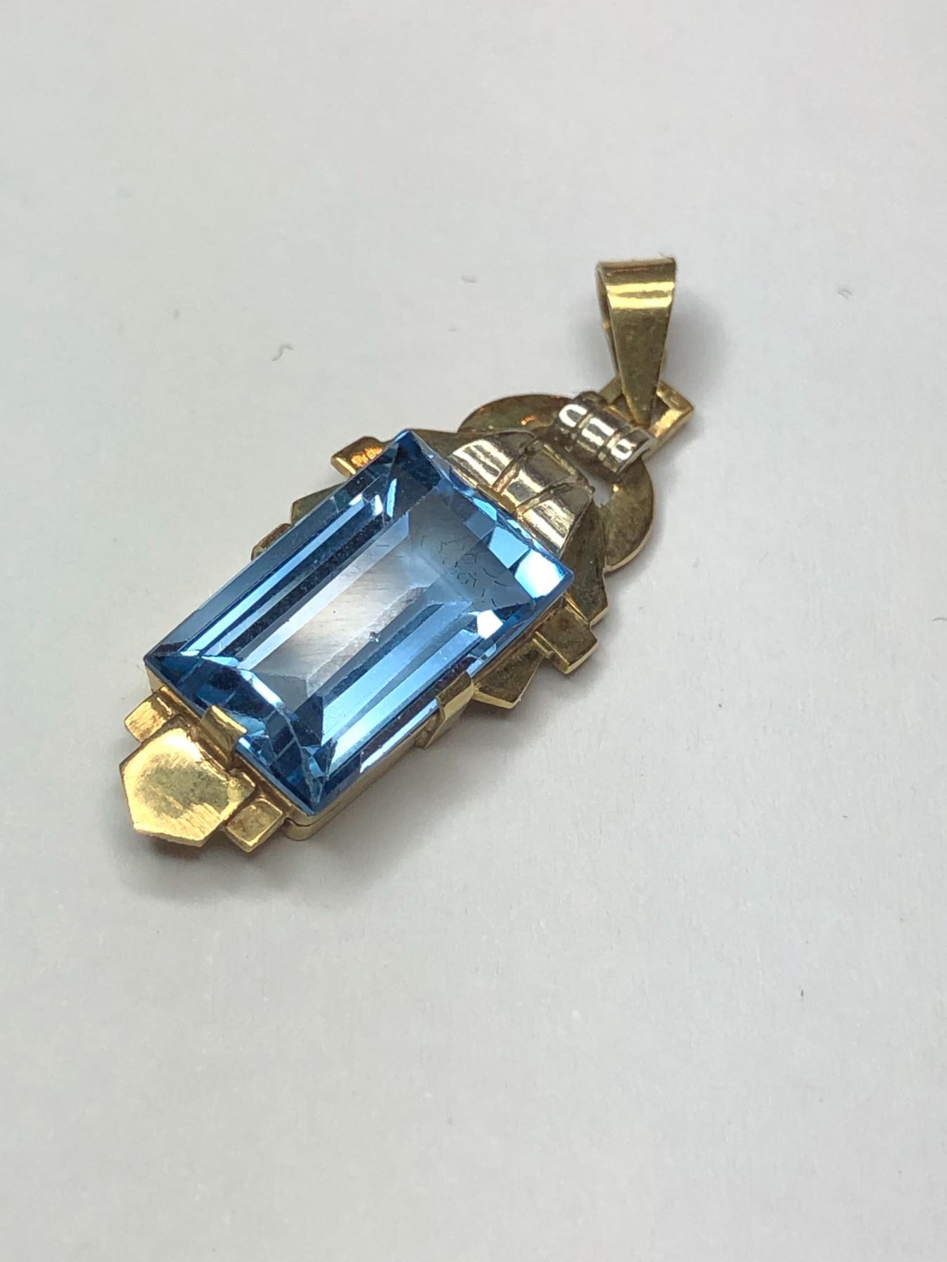 14K Yellow Gold Synthetic Spinel Pendant Weight: 2.9g 14K Yellow Gold Stone: Synthetic Spinel