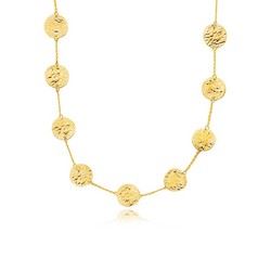 The hammered surface of this beautifully crafted 14K gold disc 46 station necklace provides texture and shine. Perfect for layering, this dramatic necklace is an incredible 38'' in length.Rhodium Polish: NoLine Item Type: GoldMetal Name: Yellow GoldMetal Content: 14KStyle Name: Fancy,Long Links,StatioWidth: 0.39 iClasp: Spring RingChain Type: Cable
